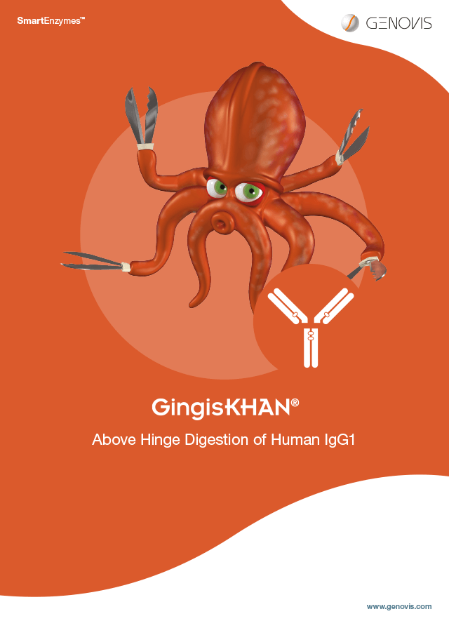 GingisKHAN Lyophilized is available as a lyophilized powder in 2000 unit vials for digestion of up to 2 mg human IgG1. The enzyme requires mildly reducing conditions to be for active, and is provided together with 5 vials of lyophilized GingisKHAN Reducing Agent.