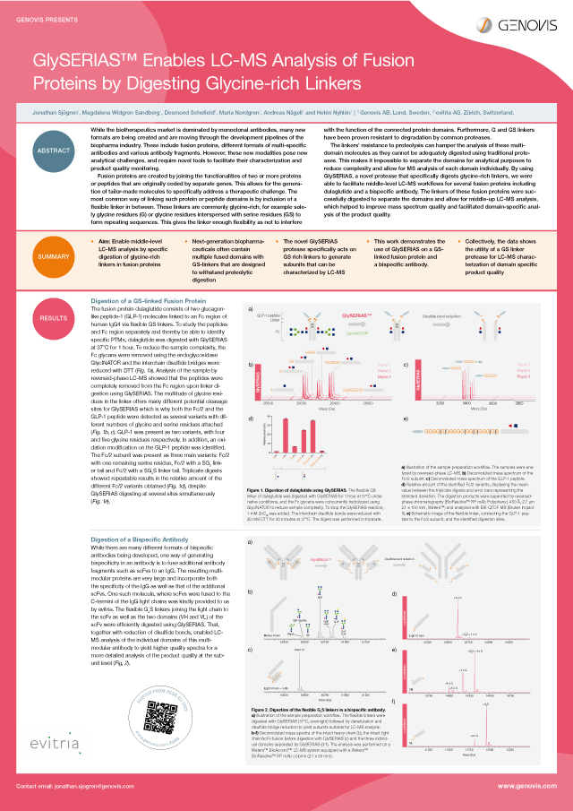 GlySERIAS is a unique enzyme for digestion of fusion proteins designed with flexible linkers consisting of repetitive sequences of glycine, or glycine and serine, residues. The enzyme is active under native reaction conditions and enables middle-level characterization of complex fusion proteins.
